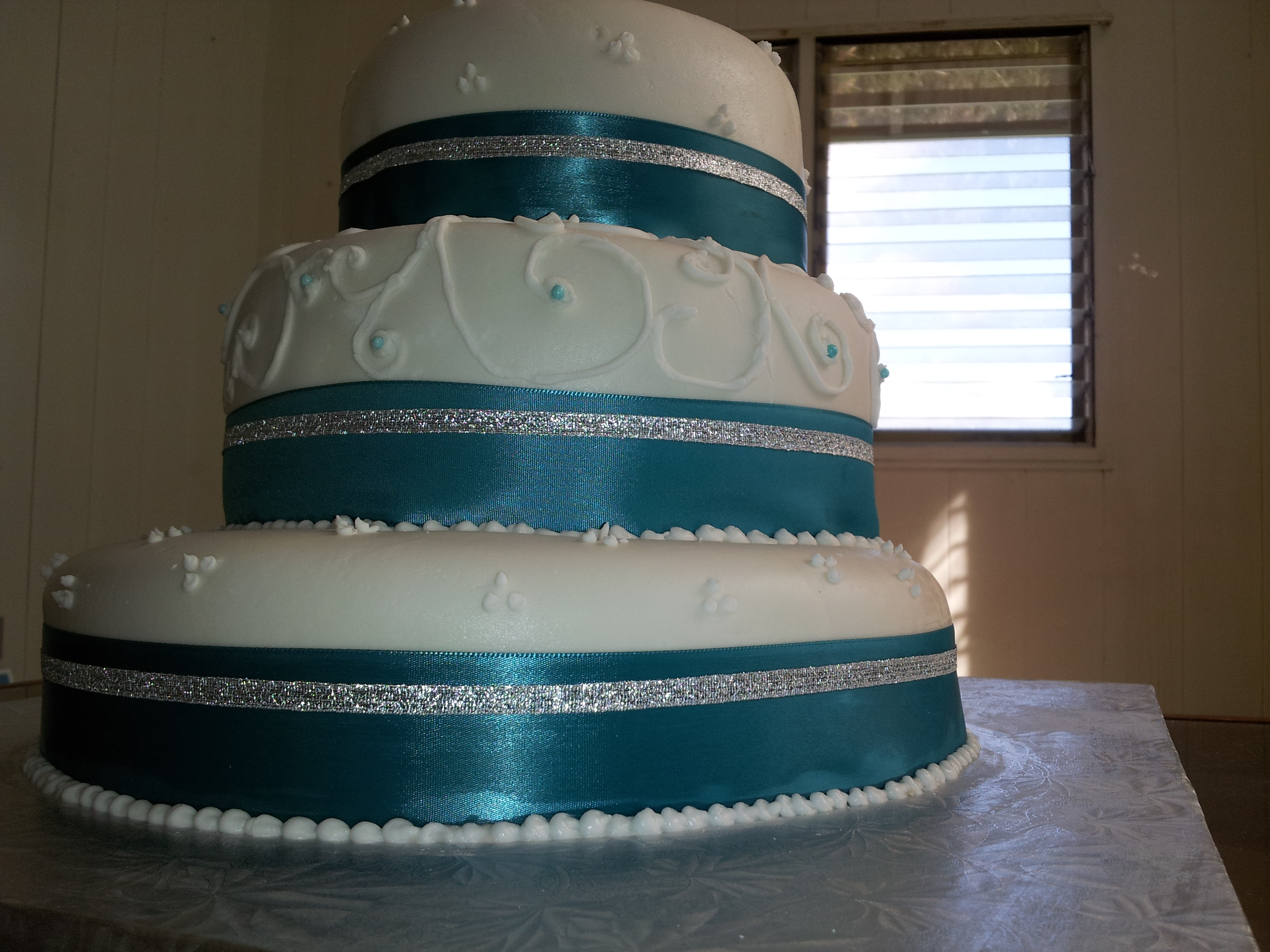 3 tier Wedding Cake: Guava Chiffon, Guava Cream Filling, Fondant work